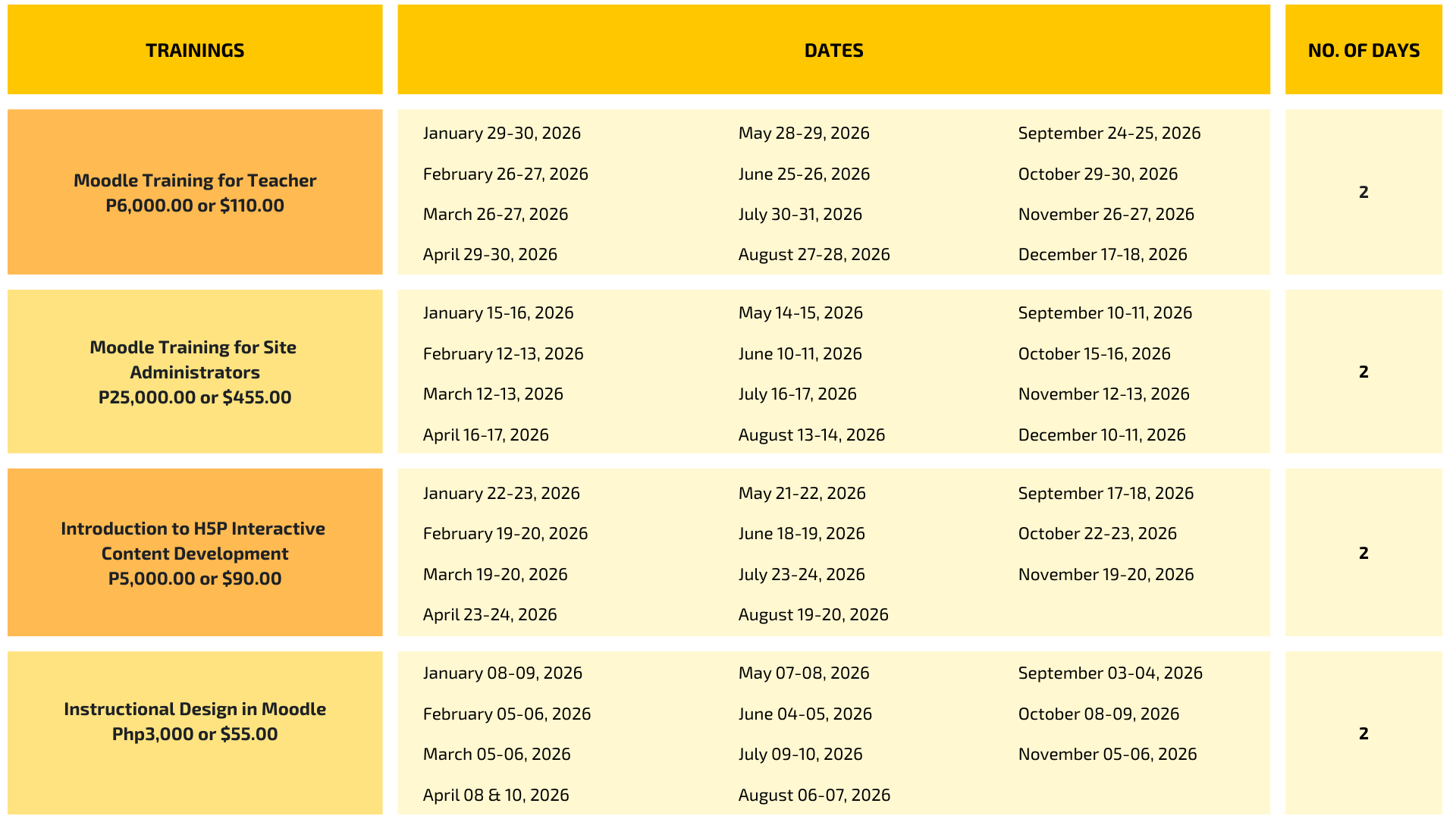To get started, please review the Training outline, and contact us at moodleph@nephilaweb.com.ph